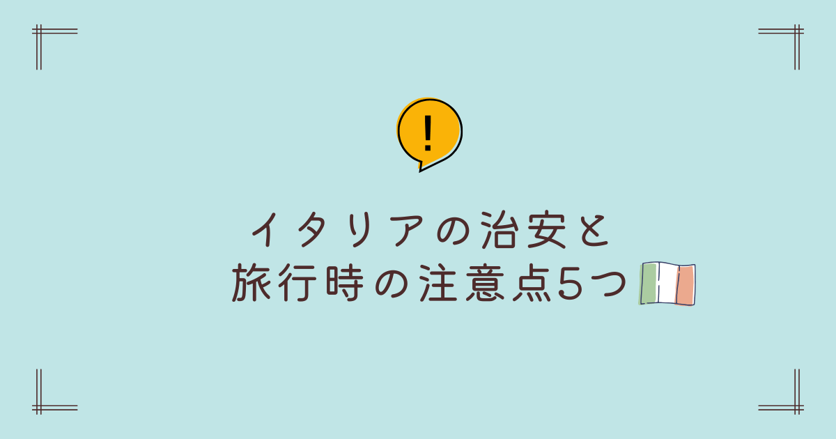 この記事では、イタリアの治安や旅行に行ったら気をつけることについて現地在住者の視点から解説します。
